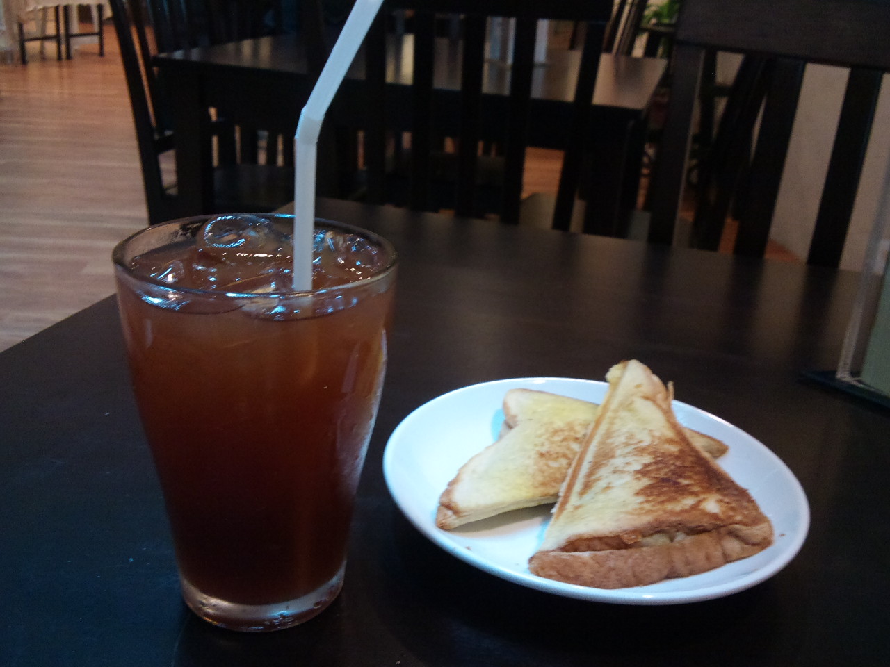 我肚子很饿,所以我叫了红粷面线,朋友早餐吃得很饱,所以只是叫了吉祥角。haha